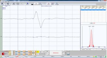 Transcranial Stimulation 1.jpgFigura 11b: Determination of the anatomical symmetry of the patient's nervous system "figure 1 malocclusion". The graph area (latency-amplitude) gives for the right side the value 9.7 mV / ms for the left side a value of 9.69 mV / ms. This indicates a symmetry of 0.1%.